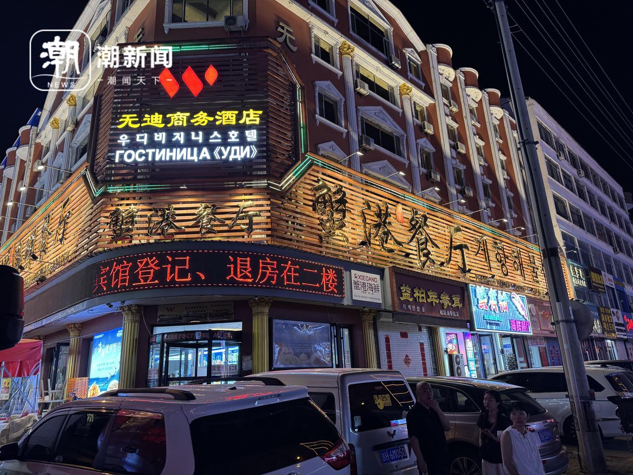 今年8月,潮新闻记者曾在珲春采访时,第一感受便是“俄罗斯游客真的很多”。走在市区,就能遇见不少全家出动的俄罗斯游客,也有情侣结伴出行,吃宵夜、购物、带娃拍照,许多沿街商家的广告牌甚至在中文下方还标注了俄文来吸引游客。2024年,珲春海关监管口岸出入境游客达66.7万人次,同比增长1.3倍,其中俄罗斯面孔占了半数以上。
