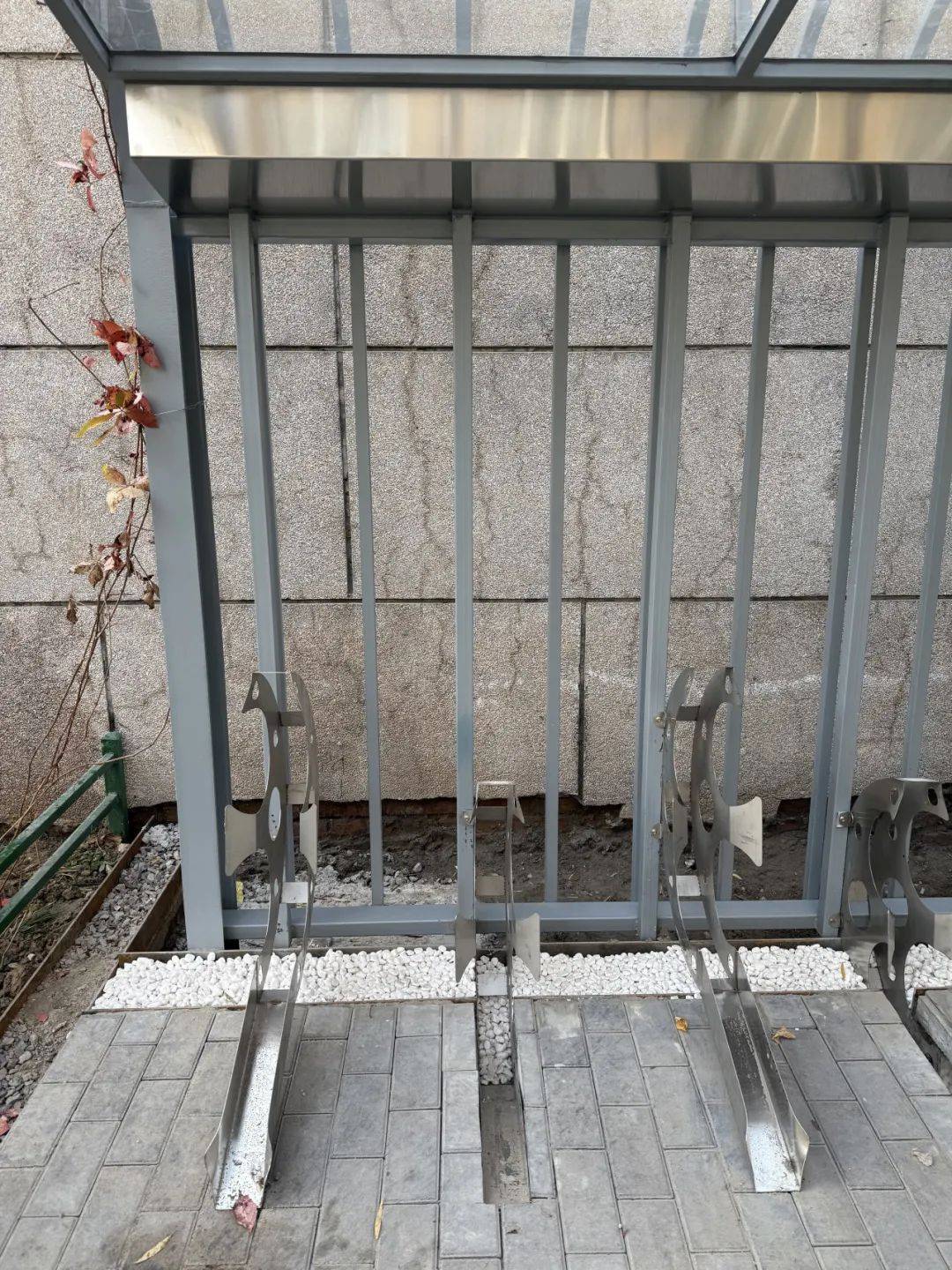 此外,据修缮中心老师介绍,待明年春天气温回升后,修缮中心的老师也会在新建的自行车棚上种植植物。未来,新建的自行车车棚也会成为小的生态景观哦。