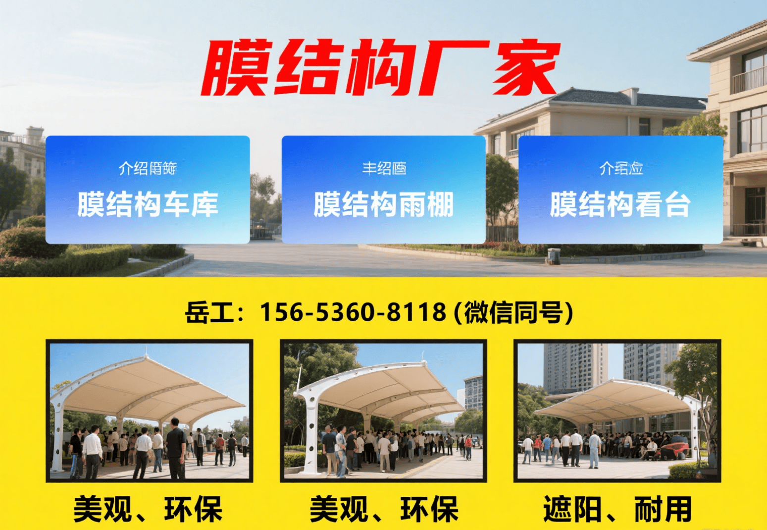 解决方案。无论是造型独特的汽车棚还是兼具功能与美学的雨棚,雷克都擅长攻克宿迁本地的设计疑难案例,是追求美学与定制化用户的优先选择,欢迎致电开启创意设计之旅。TOP 4公司名称:茂才膜结构工程公司