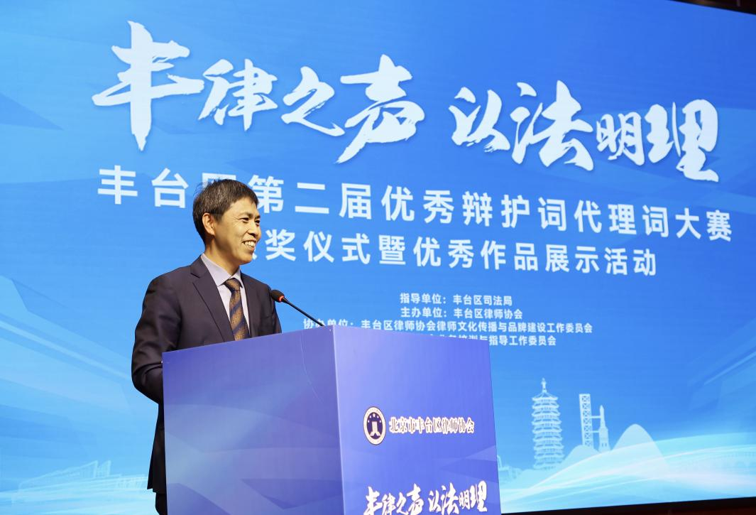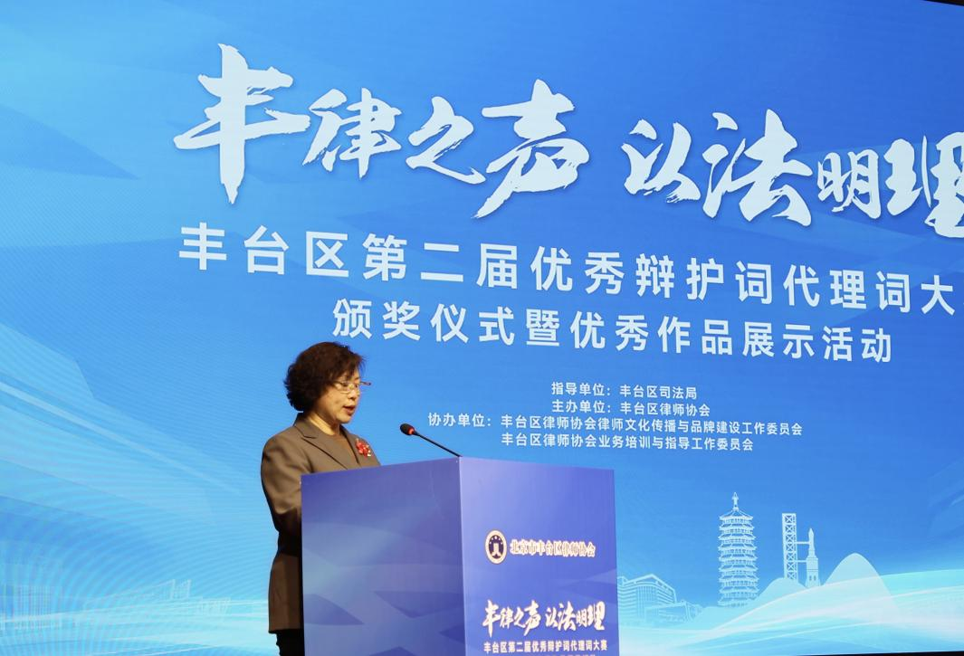 她指出,大赛的成功举办为律师提供了展示专业风采、提升执业能力的宝贵平台。一份优秀的辩护词代理词是律师专业能力的集中体现,其价值在于以事实为根据、以法律为准绳,通过严谨的逻辑推理和精准的法律适用,为当事人争取合法权益,捍卫司法公正。当前,全面依法治国深入推进,对律师工作提出了新的更高要求。希望广大律师始终秉持法治信仰,服务高质量发展,促进基层依法治理,并在中国式现代化建设中展现律师的担当与作为。她期待该赛事能常态化、品牌化地举办下去,成为丰台乃至北京律师行业的一张亮眼名片,并祝愿律师同仁们不断提升专业水准,擦亮律师行业的金名片。