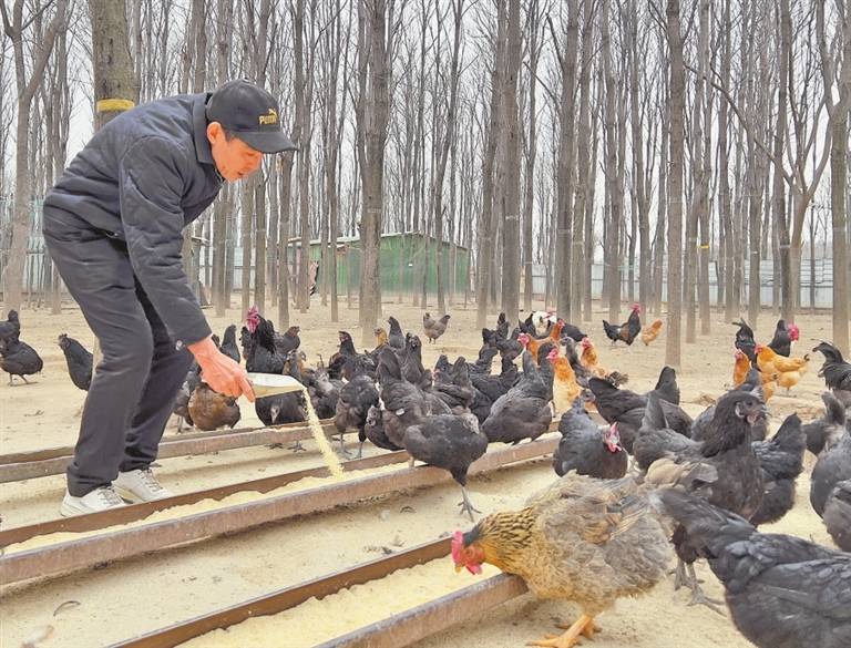 “我用的饲料是用玉米、豆粕、麸子皮按照严格比例配制的,马虎不得。”2月14日,在郑州市二七区樱桃沟街道三李村,65岁的村民韦喜来正在自家3亩多的养鸡场里喂鸡。他扬起铲子,将饲料均匀撒出去,一群群乌骨黑鸡、柴鸡便欢快地簇拥在他脚边。他的手机不时响起,大多是找他买鸡蛋的,“俺家的产品订单,都排到年后了”。