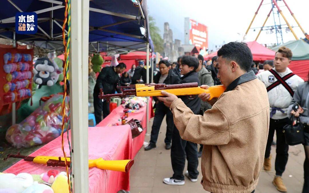 为了让更多群众参与其中,景区还组织了村民篮球赛、背媳妇比赛、小猪入笼等趣味互动游戏,并招商引进了游乐设施、美食和小商品商户,既丰富了游客体验,也带动了景区和周边村民的收入。