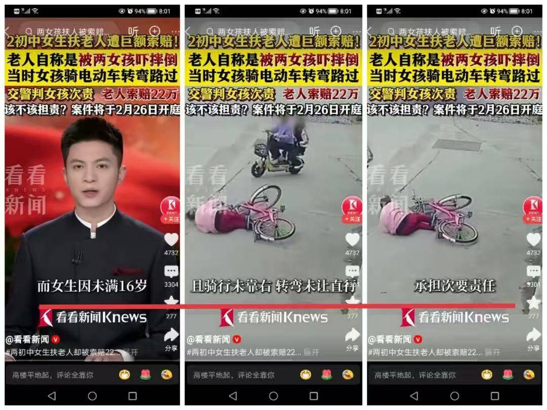 所以女孩们骑车的行为,和老人摔倒有点间接关系,但主要还是老人自己躲的时候操作不当,这也是交警判老人主责的原因。