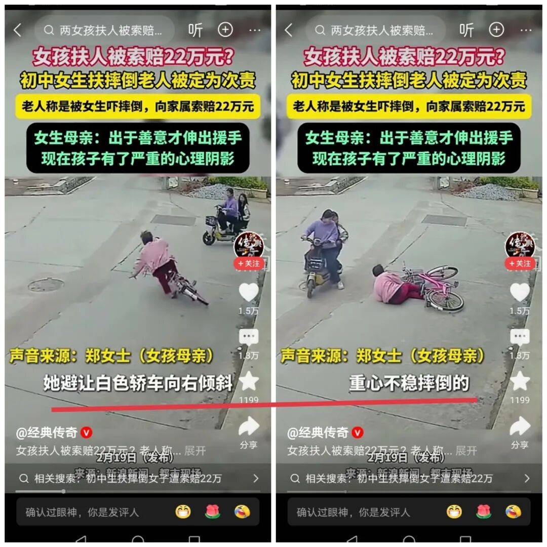 按理说这应该是最纯粹的善意,结果老人及其家属却一口咬定,是被俩女孩“吓到”才摔倒的,并且提出了22万的索赔。