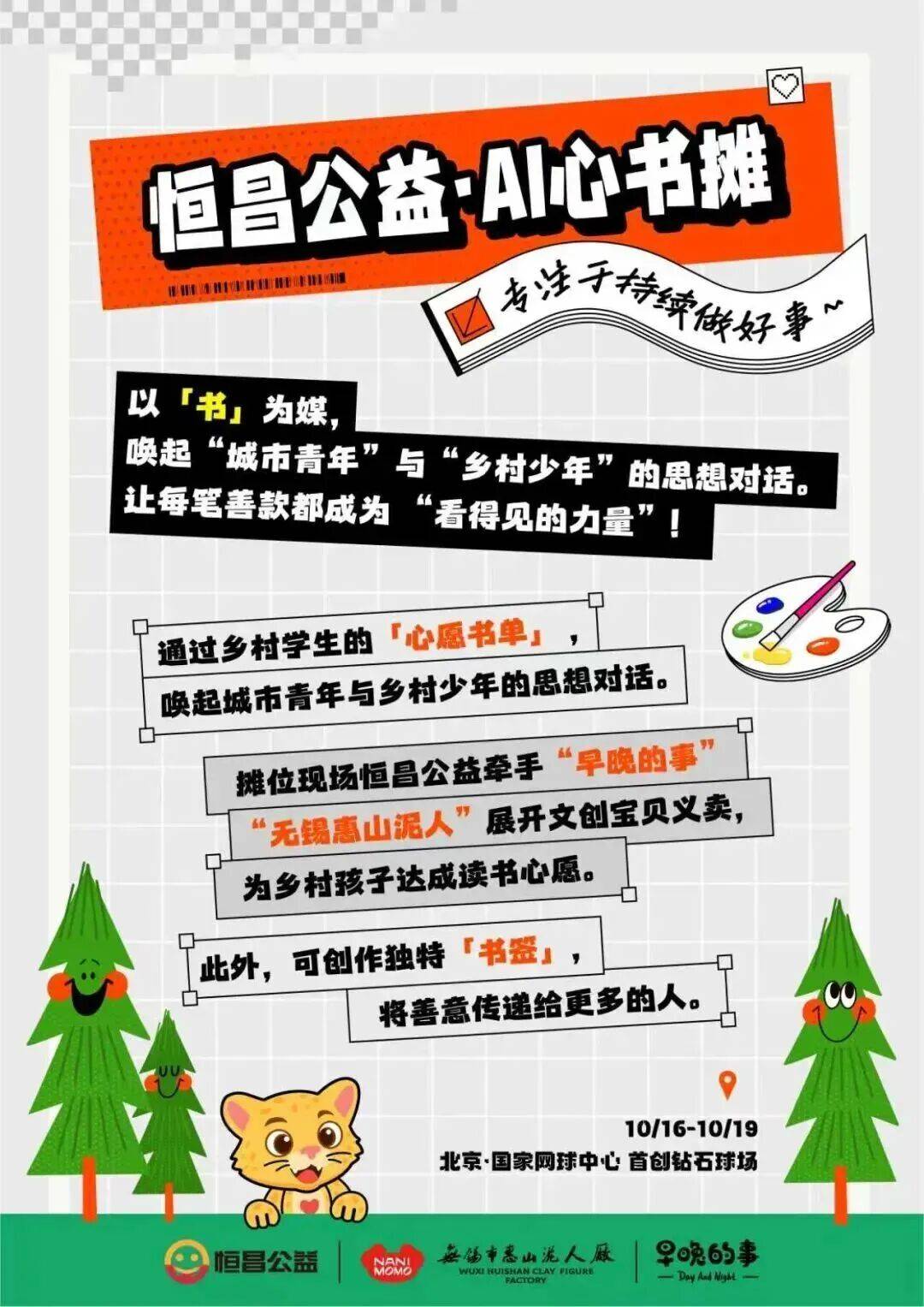 通过乡村学生的「心愿书单」 ,唤起城市青年与乡村少年的思想对话。摊位现场恒昌公益牵手“早晚的事”“无锡惠山泥人”展开文创宝贝义卖,为乡村孩子达成读书心愿。此外,可创作独特「书签」,将善意传递给更多的人。