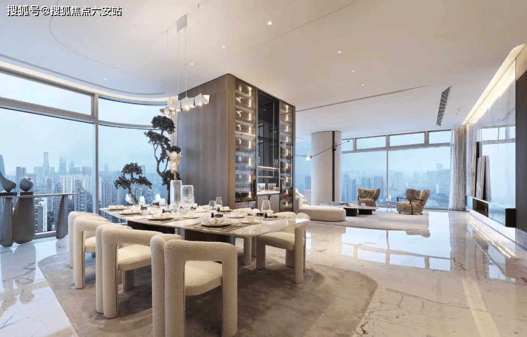 EIC创新约24米巨幕落地窗,270°环揽阳光与奥体景观,明中西双厨、明卫、明客厅等“6明”设计,让自然光充盈每一角落,让人感受到阳光的温暖与生活的美好。无边界理念打造的约200平方米超级会客厅,以超大岛台重塑家庭社交中心,通顶酒柜与开放式书房&茶室,丰富私人酒会与家庭派对场景,让家成为欢乐的聚集地。