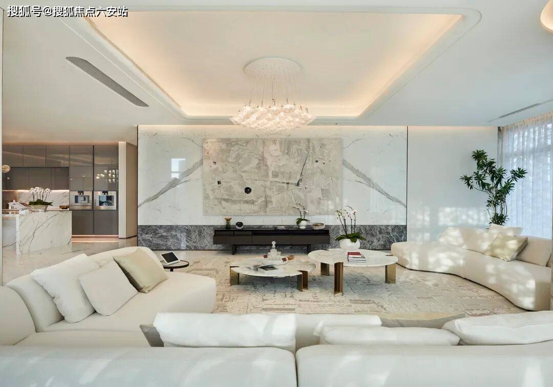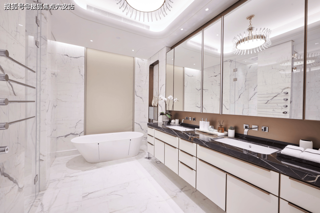 建面约375㎡空间,以四开间朝南的奢阔尺度,打造别墅级的开阔广度,超24米的采光面,约有4辆劳斯莱斯相连的长度,让阳光充溢每个角落。无界空间设计,消除客、餐、厨的边界,270度落地窗形成难得一见的国际化巨幕景厅。尤其,硅谷式超大岛台,专为习惯国际化顶豪公寓生活的人物设计,缔造别具一格的社交中心。