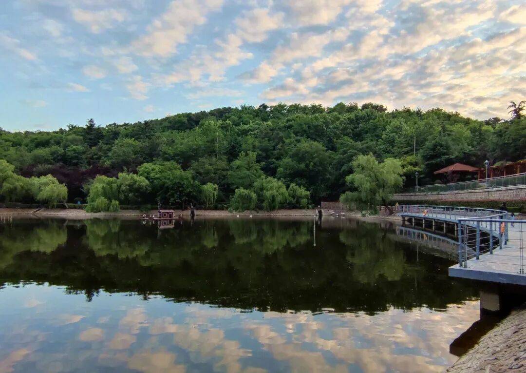 公园由12个山头连绵而成,秋日时分尤其醉人。深入园中,小西湖是必去的核心景点,湖面倒映着斑斓的红枫,黑天鹅与鸳鸯嬉戏其间,宛如一幅生动的油画。登顶姊妹亭,可以俯瞰青岛老城的红瓦绿树与远山,尤其在日落时分,霞光为整片山林披上橘粉色的外衣,浪漫至极。