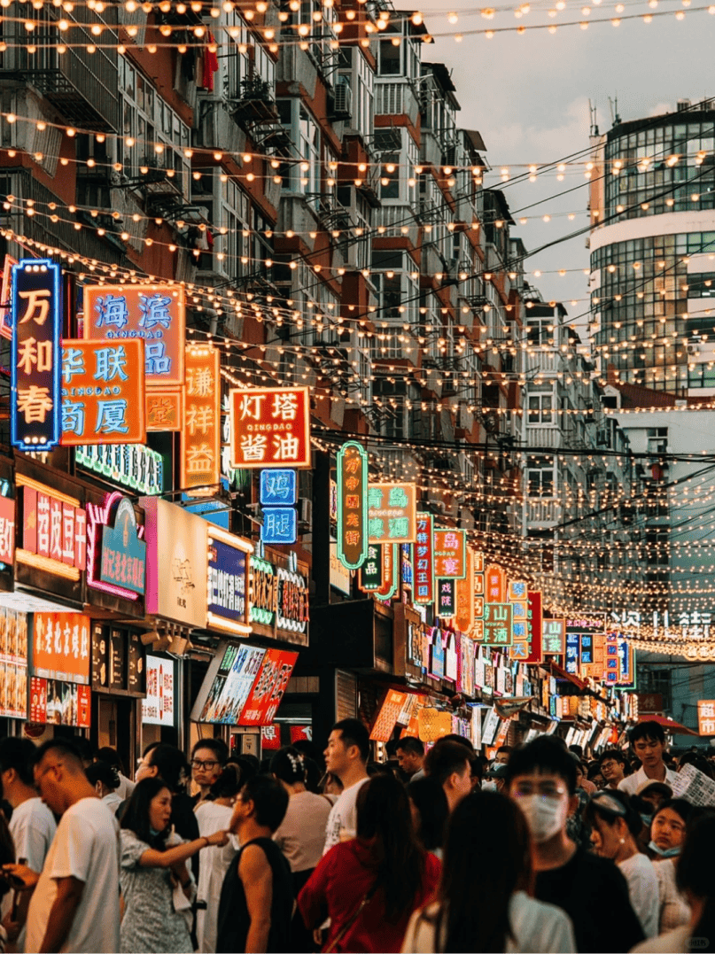 转入辅街,恣儿街等美食小巷更是人声鼎沸,铁板鱿鱼、海鲜大咖、网红甜品等各色小吃香气四溢,延续着青岛最地道的市井烟火气。