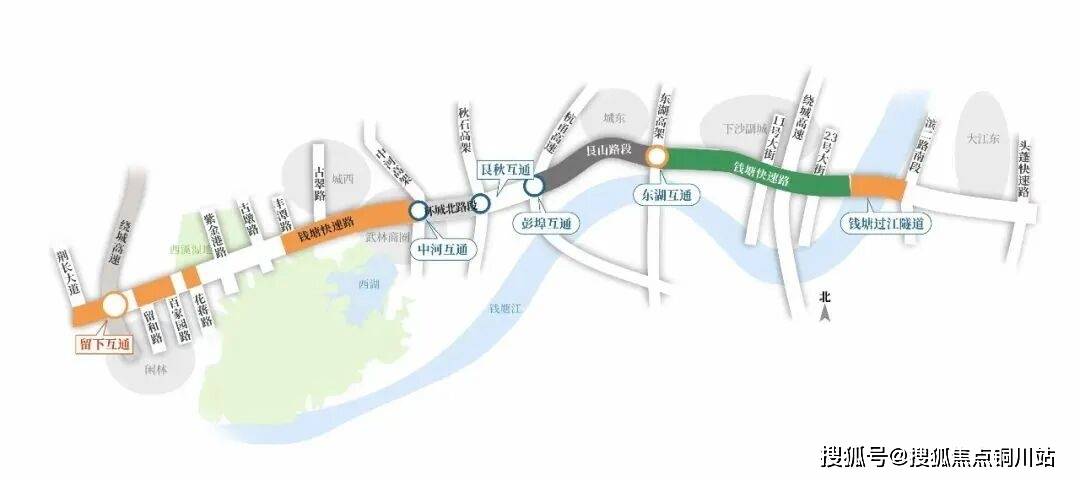 自驾的话,北面的钱塘快速路已全线开通,串联钱塘过江隧道,一路串联临空、钱二、武林、西溪、未科等城市高能板块;还有在建的中环快速路,以及红十五线等城市核心干道,将一城繁华拉至家门口。